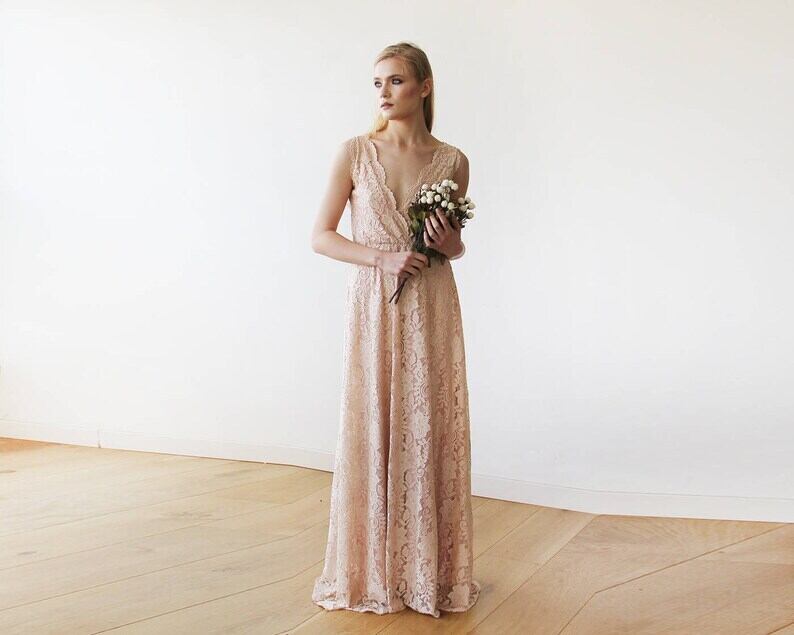 パーティードレス レース Vネック エレガント グローブ 花嫁 拳式 ロング ノースリーブ