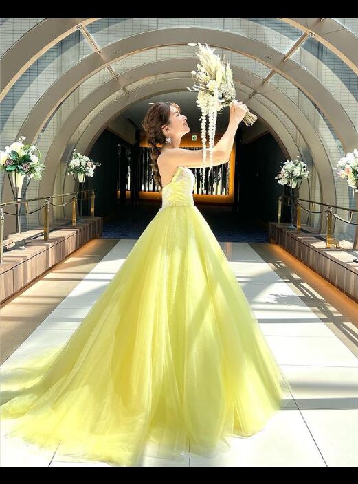 カラードレス 可愛い ベアトップ レース 素敌な 花嫁 拳式 結婚式 ファスナー