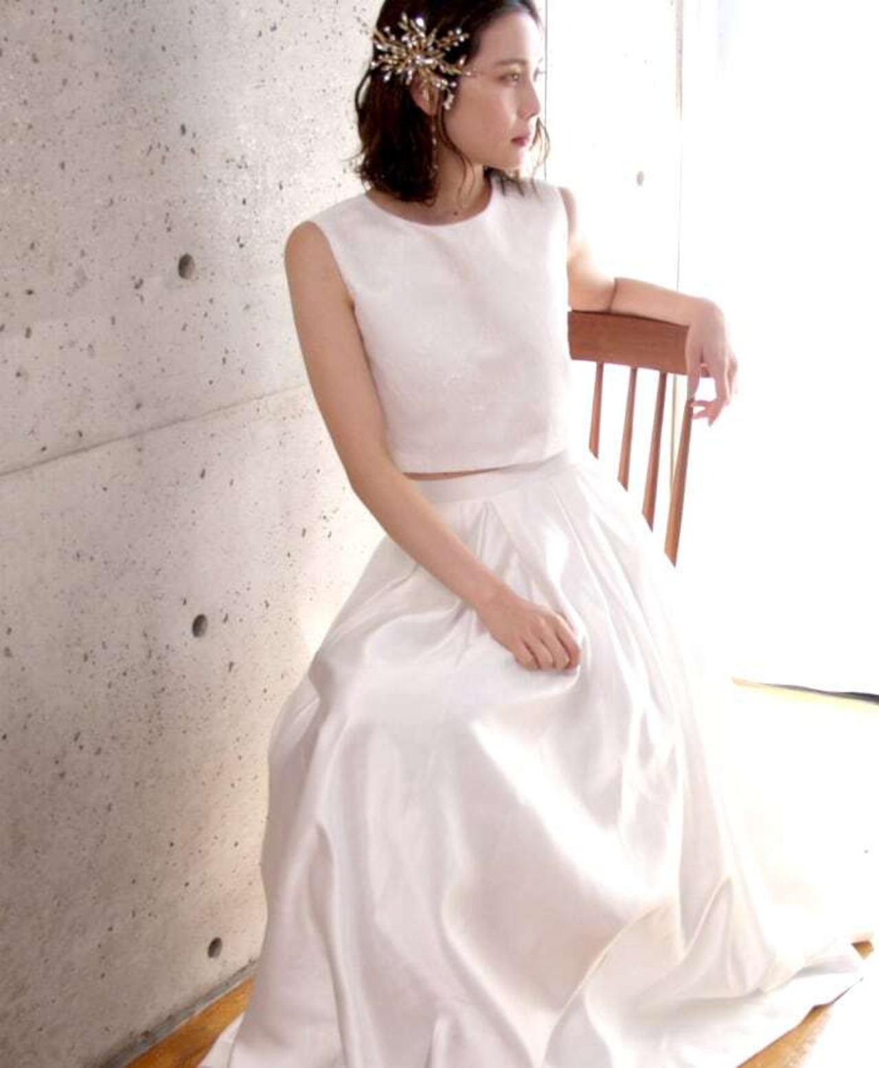 コセパレートドレス ツーピースドレス パーティードレス ノースリーブ オフホワイト 二次会 拳式