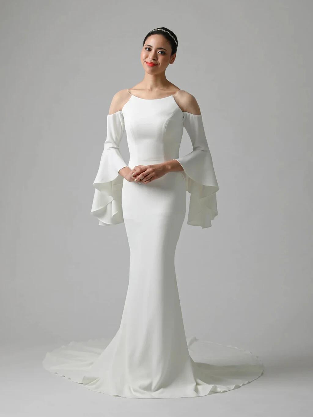 パーティードレス オフホワイト オフショルダー マーメイド 花嫁 結婚式/披露宴