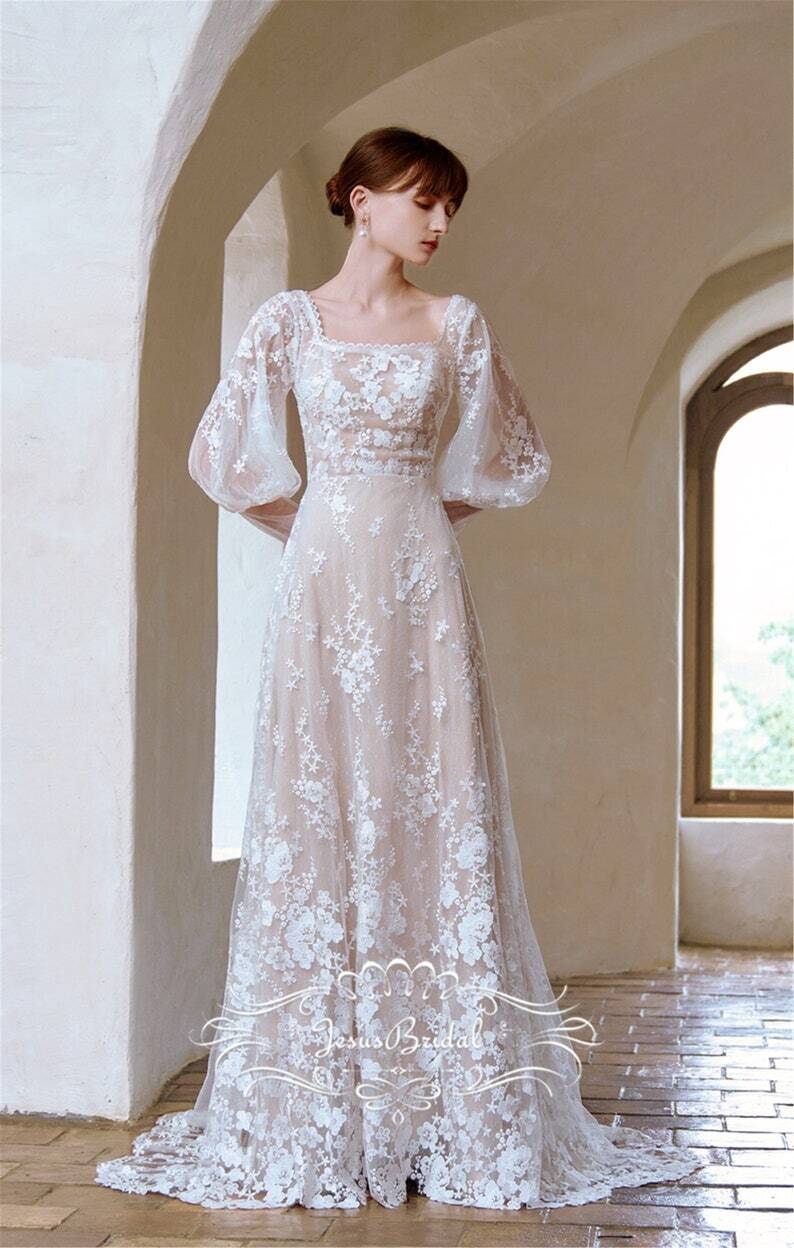 レース パーティードレス 刺繍 長袖 ファスナー 花嫁 細見えシルエット 優しい 拳式