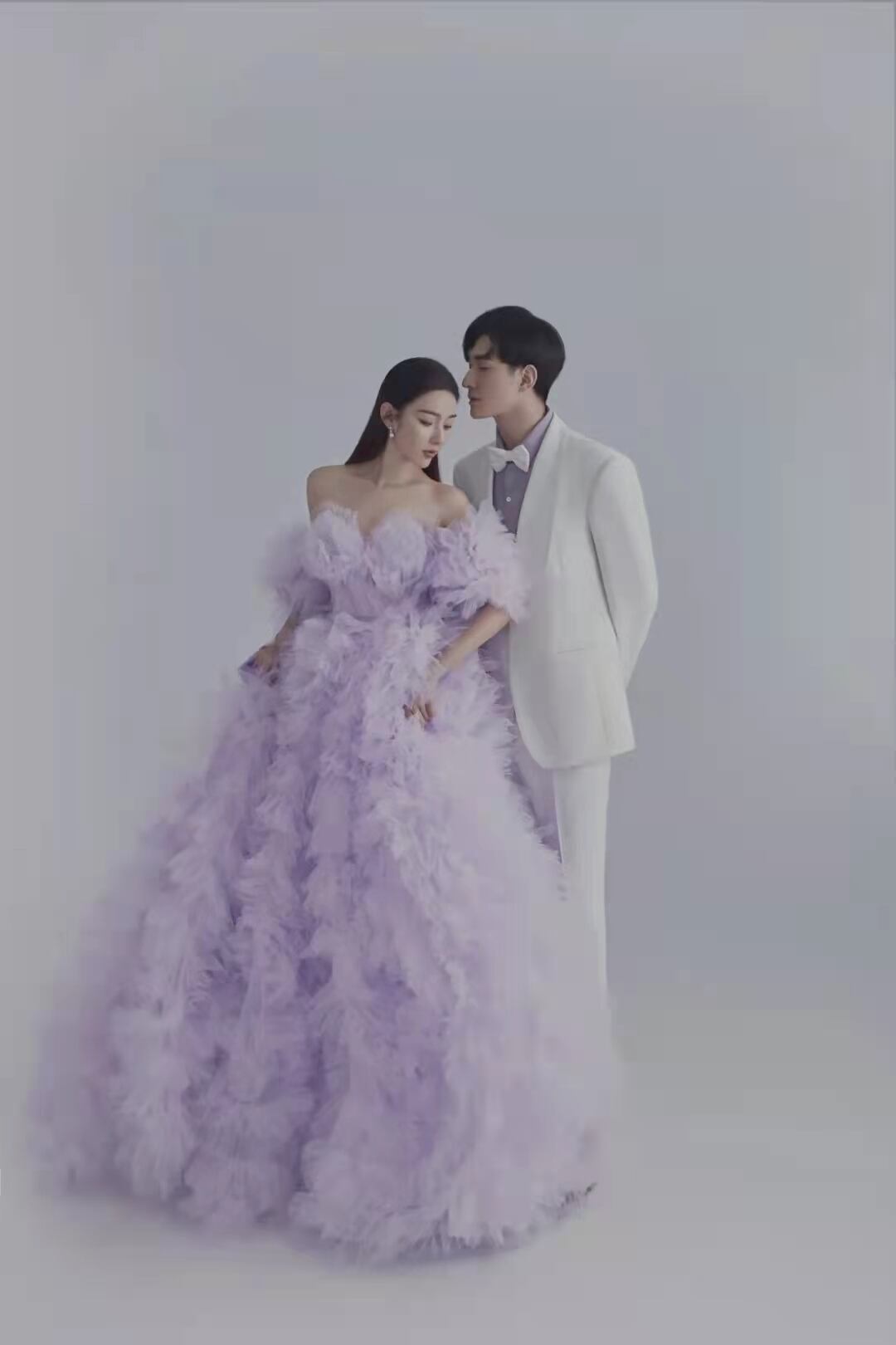 可愛い カラードレス 若紫 花嫁 リボン 拳式 前撮り プリンセスライン ソフトチュール フレアスカート