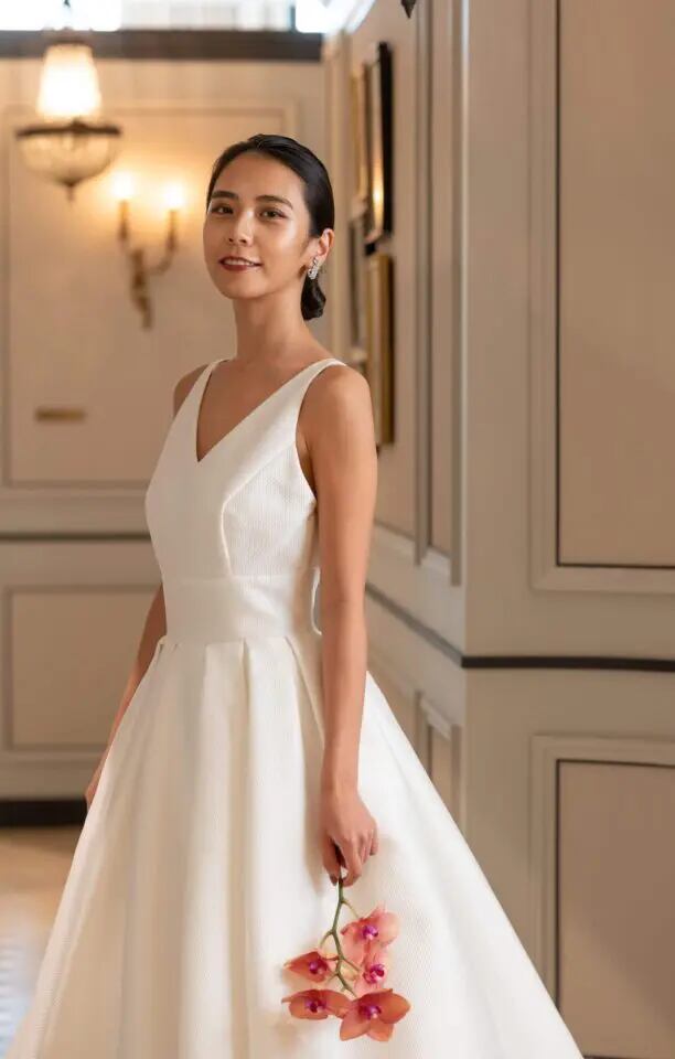 花嫁 ウエディングドレス 背中見せ Vネックドレス ノースリーブ 結婚式 優しい
