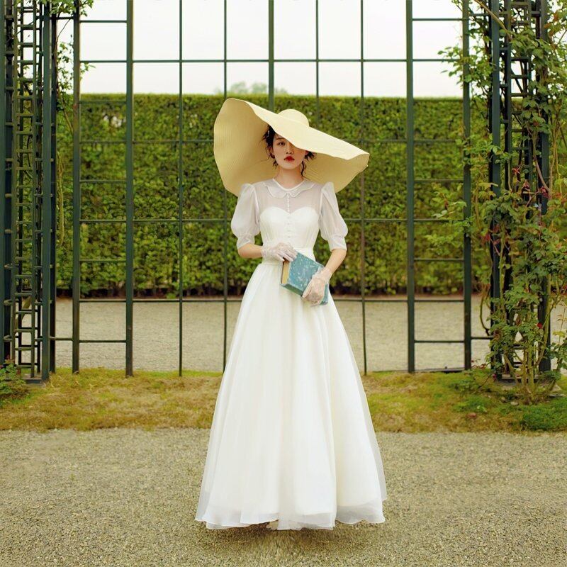 ウェディングドレス 二次会 花嫁 結婚式 ドレス パーティードレス クラシカル 袖あり 大きいサイズ