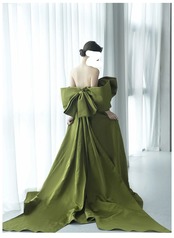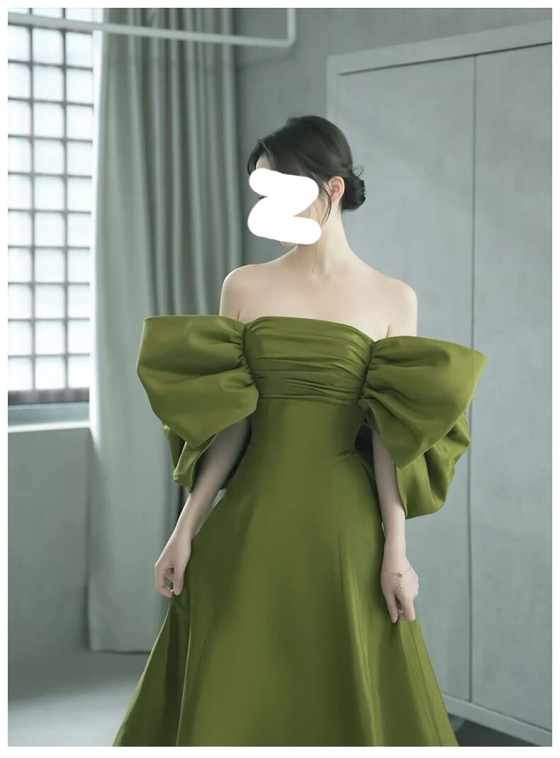 パーティードレス グリーン リボン 高みせ ベアトップ 拳式 前撮り パーティドレス