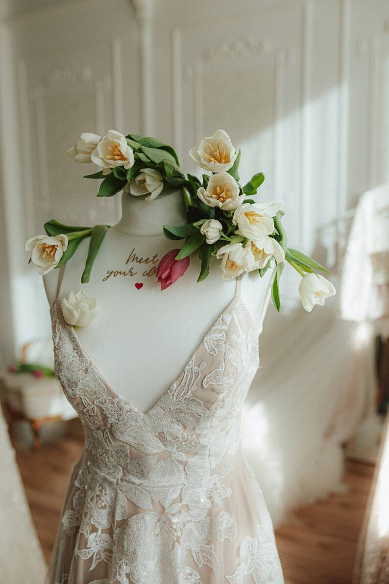 レース キャミソール ウエディングドレス くるみボタン 背中見せ エレガント 花嫁 結婚式