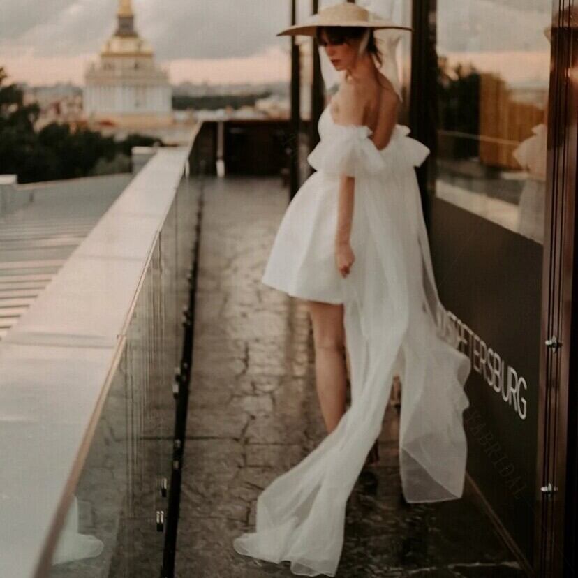 フランス風 パフスリーブ 取り外し袖 ベアトップ パーティードレス オフホワイト 花嫁 前撮り