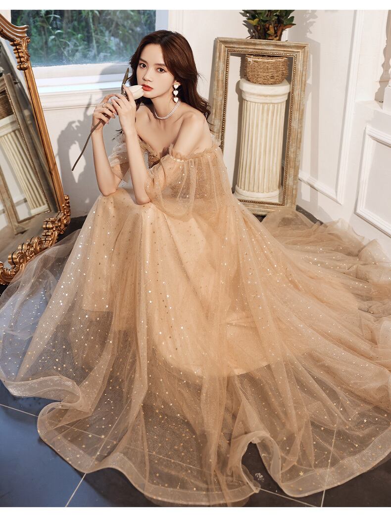 夜会服 シャンパン パーティードレス 編み上げ オフショルダー トレーン 音楽会/発表会