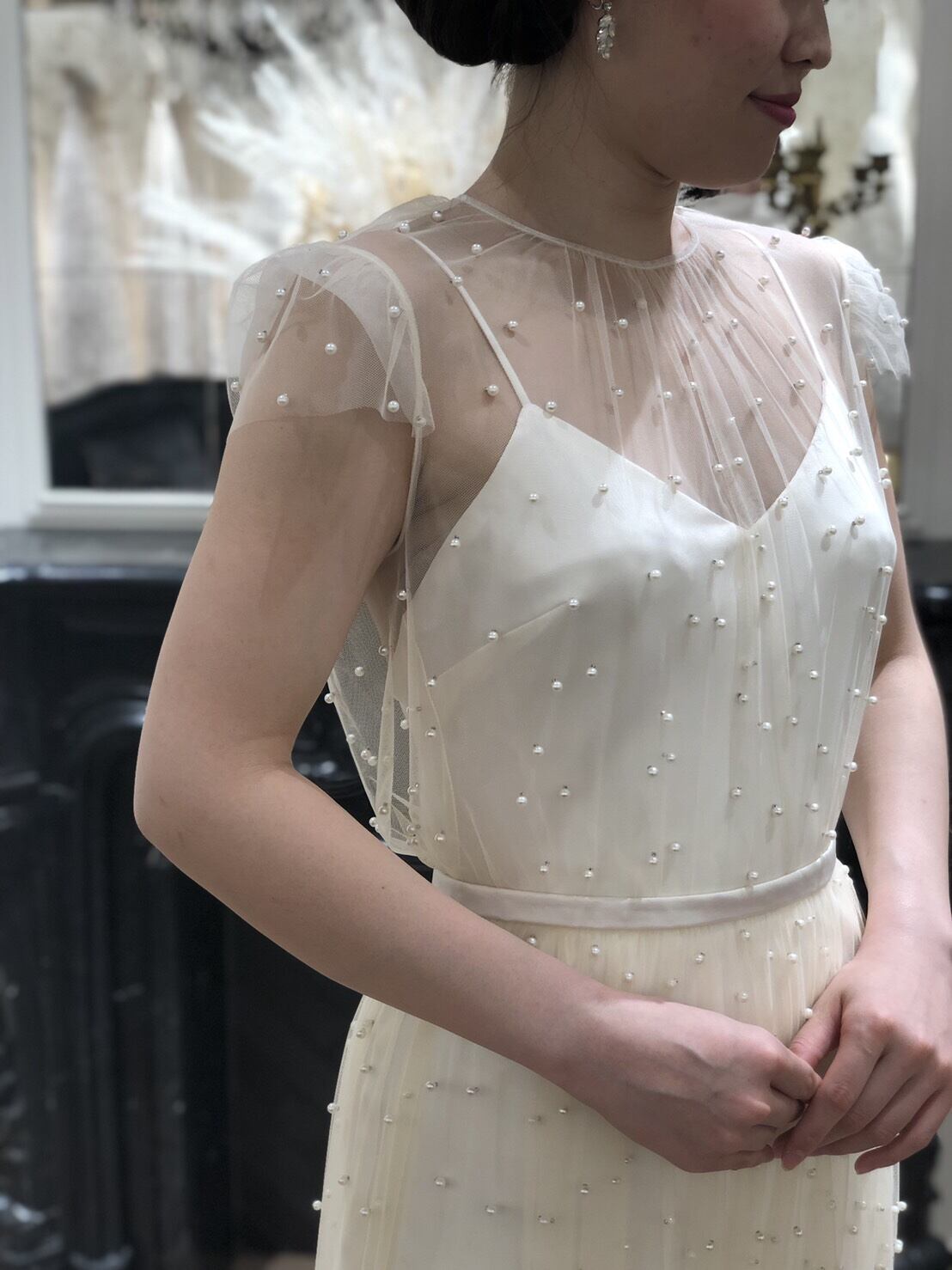 パール キャミソール 拳式 パーティードレス 可愛い 背中見せ スレンダーライン 優しい 花嫁 ハンドメイド