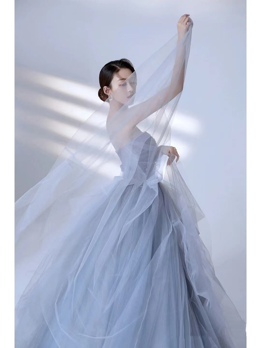 花モチーフ カラードレス 薄青 ベアトップ 可愛い クラシカル 妊婦 結婚式/披露宴 プリンセスライン