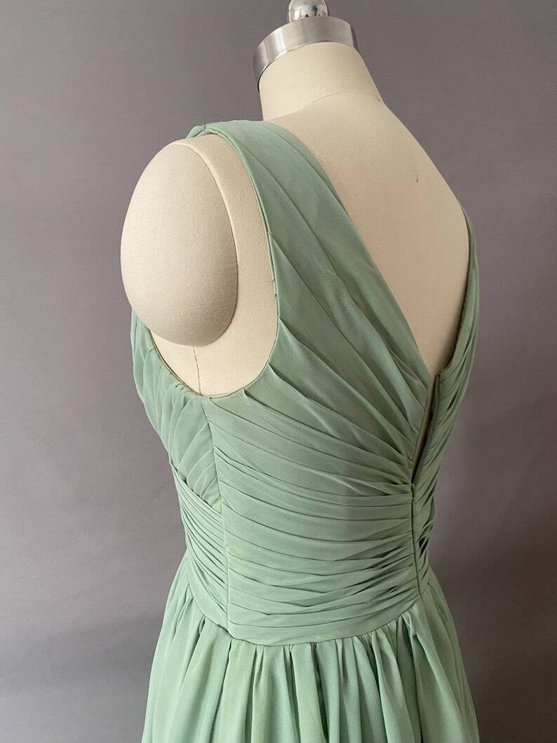 グリーン パーティードレス Vネック 背中見せ 編み上げ 演奏会 拳式 ノースリーブ トレーン/ロング