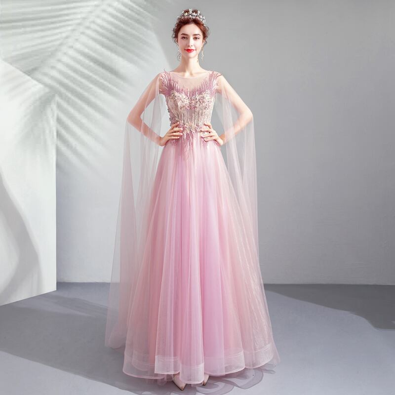 夜会服 ピンク ビジュー パーティードレス 演奏会/音楽会 編み上げ 優しい エアリー感 繊細レース ハンドメイド 可愛い