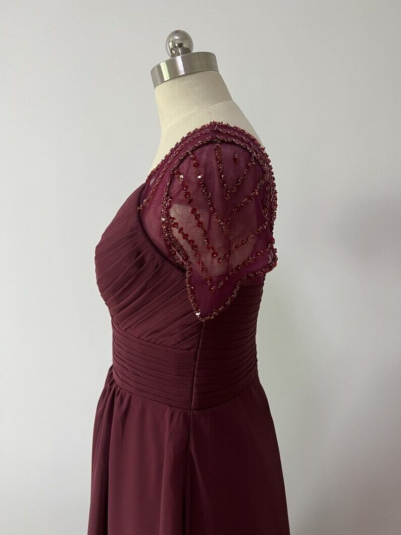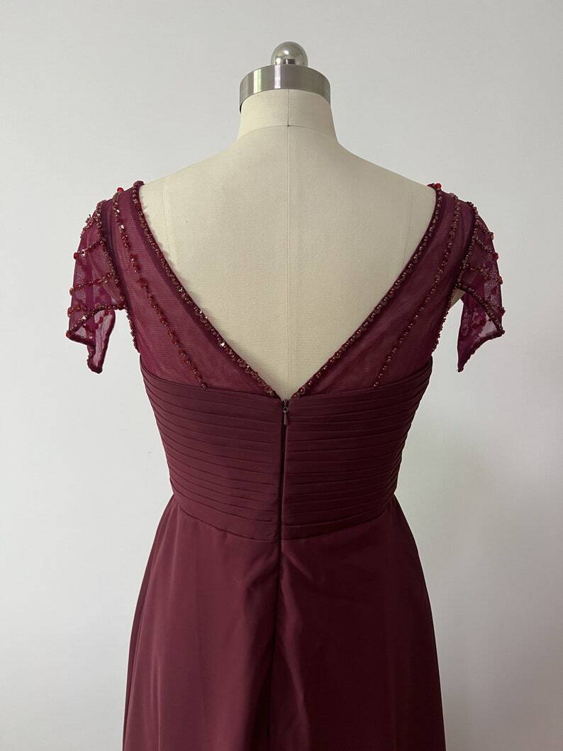 お呼ばれ エレガント ワインレッド パーティードレス Vネック キラキラスパンコール スリット 拳式 色直し