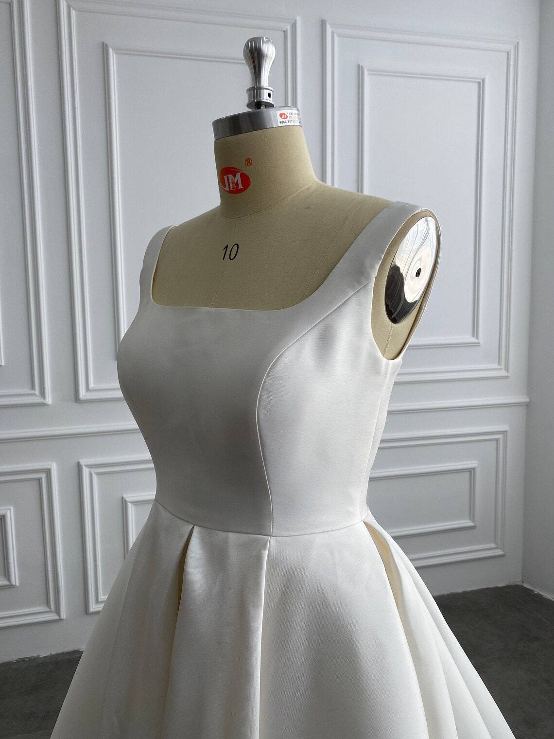 スクエアネック フランス風 ウエディングドレス くるみボタン ノースリーブ 花嫁 妊婦 拳式 Aライン トレーン