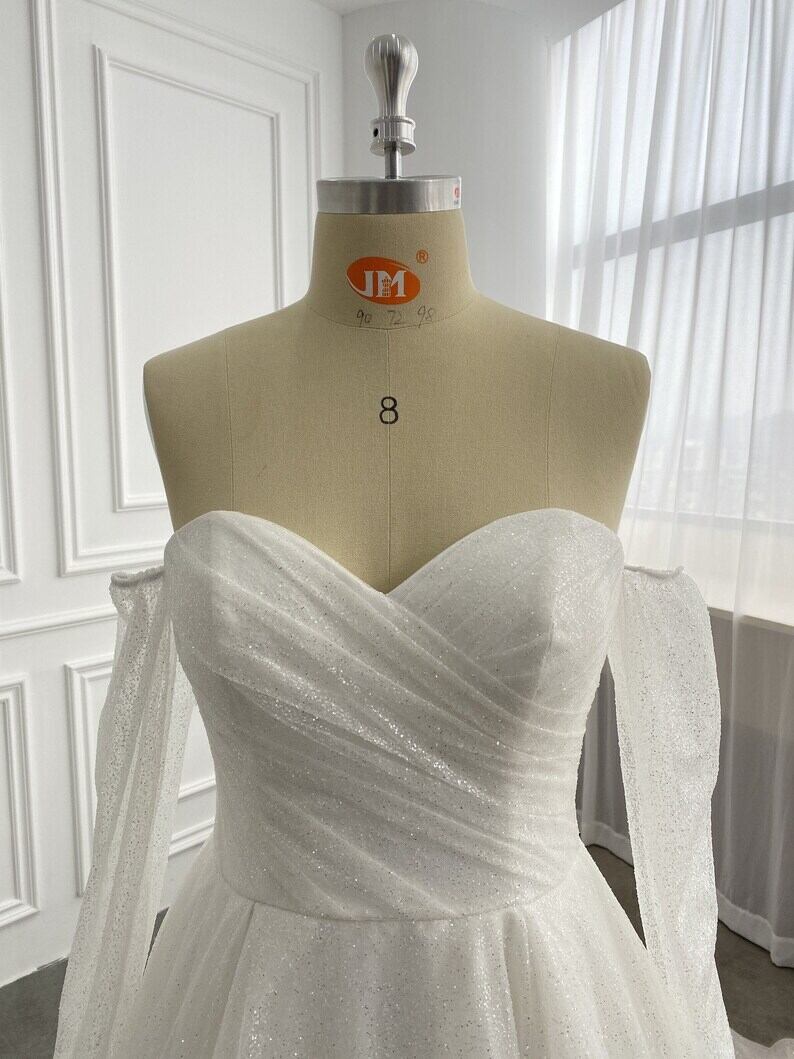 細見えシルエット ウエディングドレス ベアトップ キラキラ ファスナー 結婚式 花嫁 エレガント 肩あき 華奢 華やかなトレーン