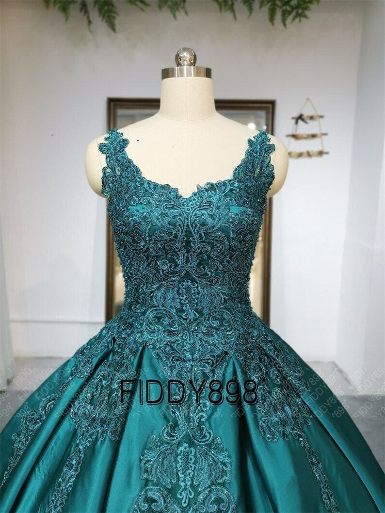 ウエディングドレス 深めな緑 繊細レース Vネック 編み上げ Aライン 花嫁 クラシカル 大人っぽい 結婚式/音楽会