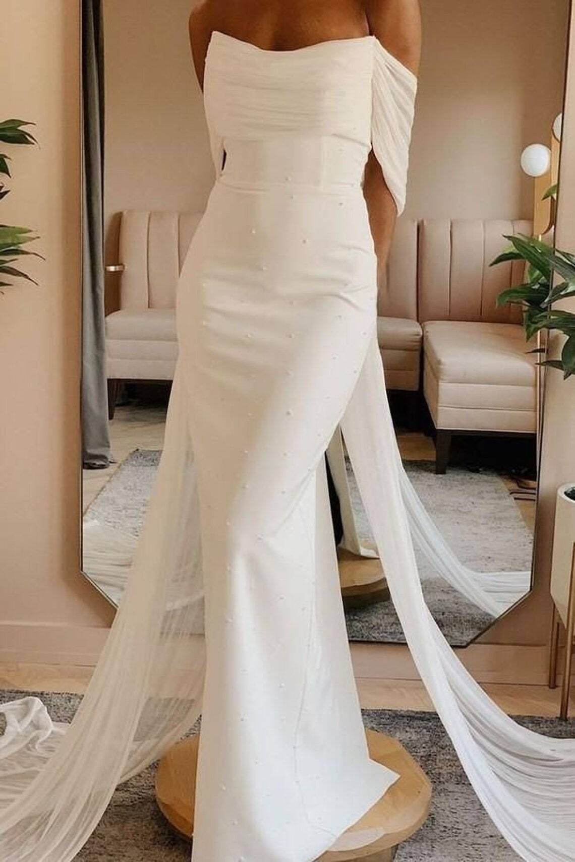 スレンダーライン パーティードレス 可愛い 優しい 花嫁 結婚式 拳式 マーメイドライン パール 色直し 気質 デザインセンス