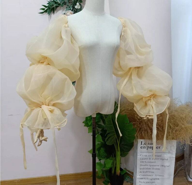 ふんわり袖 取り外し袖 長袖 ビスチェ色直し 黑/紺/赤/パステルイエロー/パープル/ピンク ドレスを合わせる
