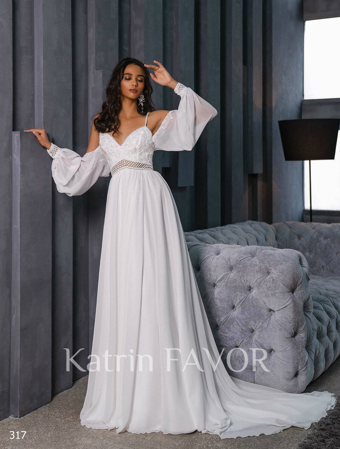 背中見せ キャミソール スレンダーライン 長袖 リーフ刺繍 パーティードレス ランタンスリーブ 演奏会/音楽会 花嫁 妊婦