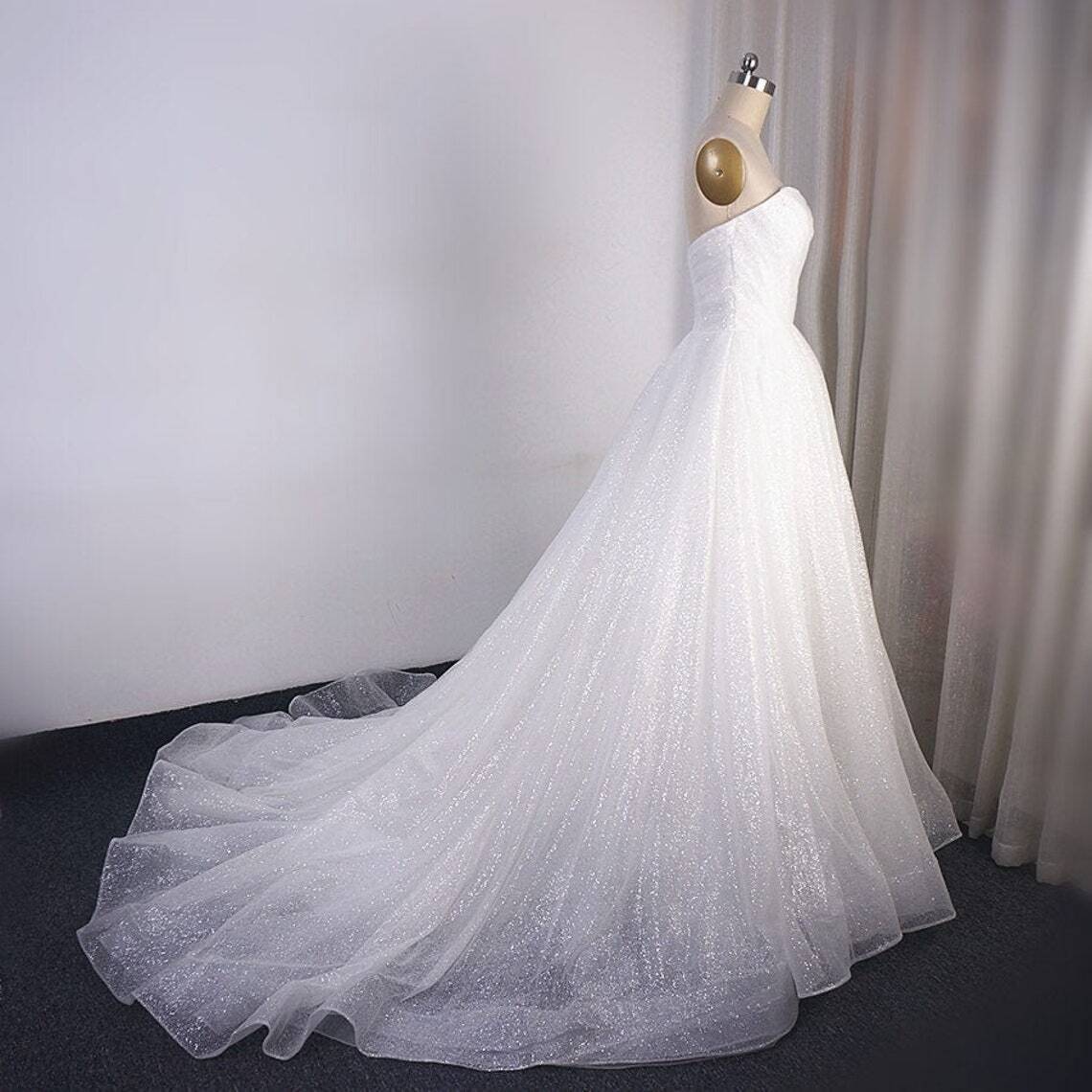 ウエディングドレス ベアトップ キラキラ 花嫁 スレンダーライン 可愛い 結婚式/披露宴