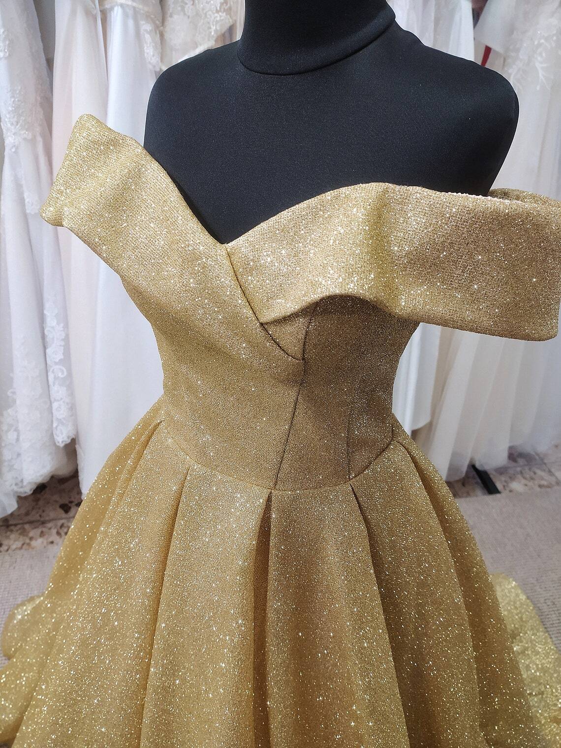 二者択一 パーティードレス オフショルダー キラキラグリッターチュール 編み上げ 花嫁 シャンパン色/ワインレッド