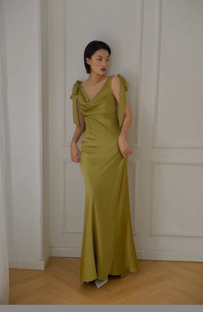 快適な生地 リボン グリーン パーティードレス ファスナー スレンダーライン 花嫁 拳式 滑らか トレーン/ロング