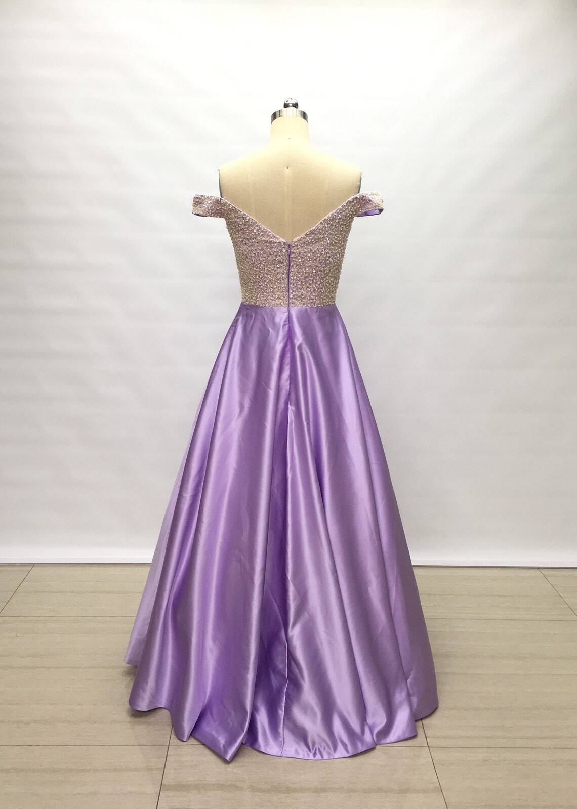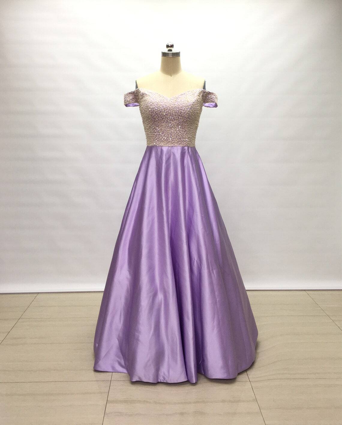 ベアトップ パーティードレス オーキッド キラキラ オフショルダー Aライン サテン 花嫁 拳式 音楽会