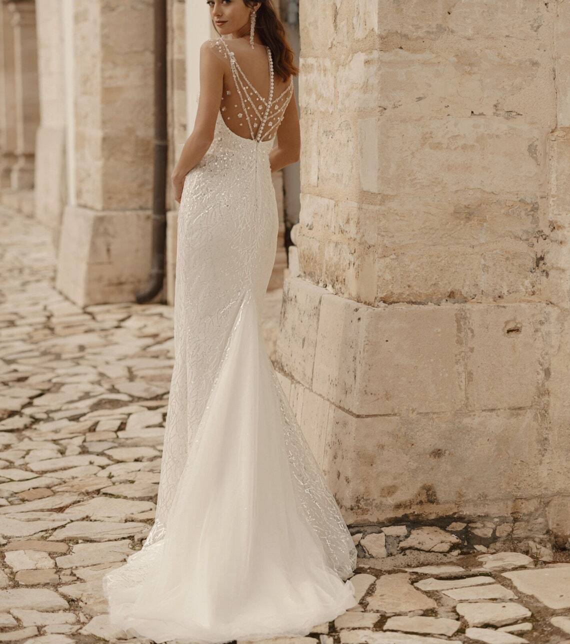 オフホワイト キャミソール マーメイドライン キラキラチュール 披露宴/結婚式 花嫁 ビジュー ウエディングドレス
