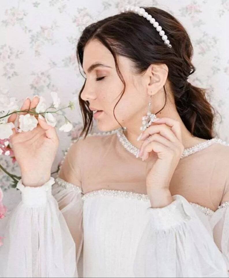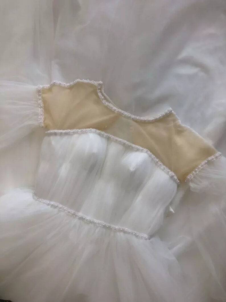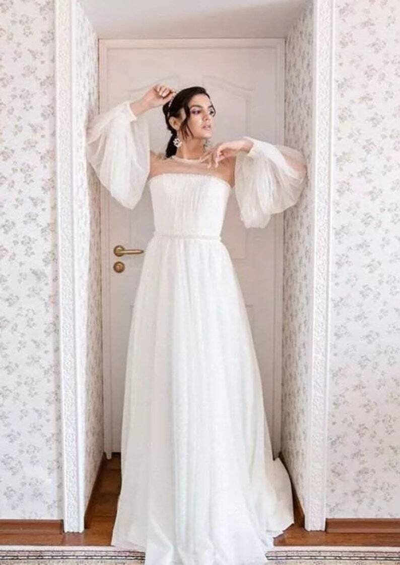 ふわふわ パーティードレス パール ランタンスリーブ エレガント 優雅なシルエット 長袖 披露宴/結婚式 花嫁