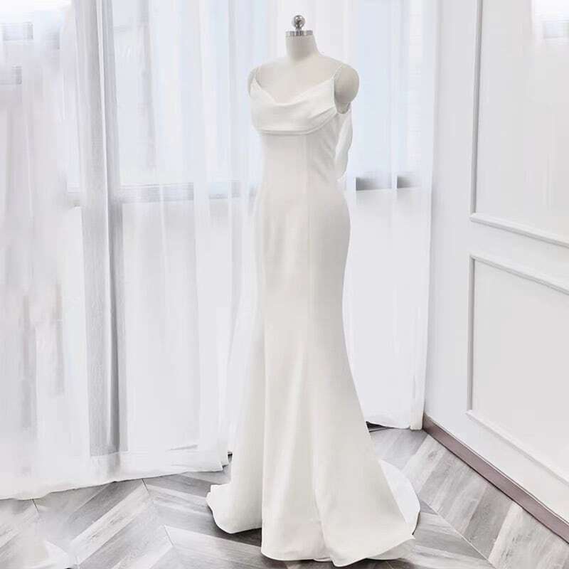 パーティードレス 背中見せ ラウンドネック キャミソール 花嫁 拳式 二次会 オフホワイト マーメイドライン
