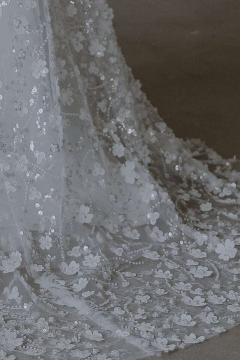 ソフトマーメイドライン ビジュー Vネック キラキラ 贅沢な小花総レース 華奢 パーティードレス 花嫁 披露宴/結婚式 背中見せ