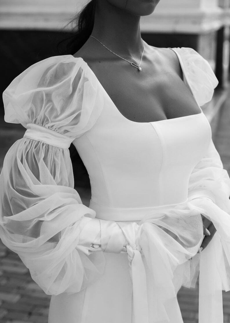 背中見せ 色直しパーティードレス 花嫁 拳式 二次会 スクエアネック 長袖 マーメイドライン オフホワイト 優しい=