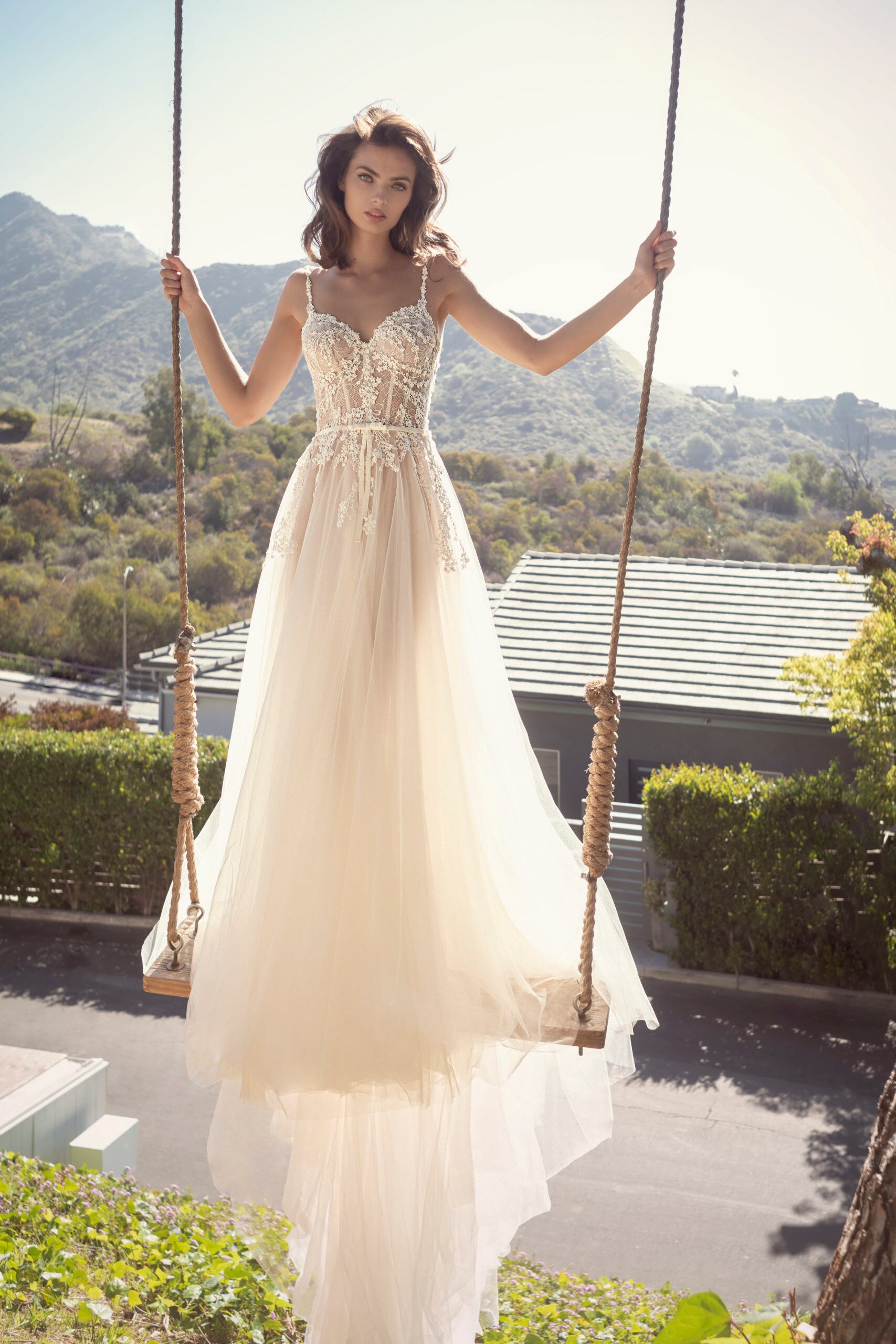ボタニカル柄のドレス ウエディングドレス キャミソール ベアトップ 花柄のモチーフ刺繍が美しく チュールスカート 細見えシルエット ふわふわ