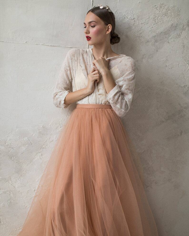 スカート チュールスカート ソフトチュール テラコッタ色 拳式 エアリー感 トレーン/ロング 可愛い