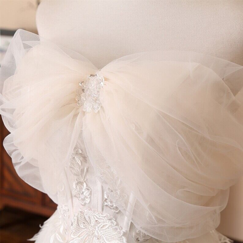 パーティードレス リボン ベアトップ 枝花刺繍 ビスチェドレス Aライン 花嫁 披露宴/結婚式 オフホワイト 優しい