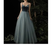 パーティードレス色直し 可愛い 細見えシルエット 揺らめく裾 ベアトップ 拳式 前撮り ブルーグレー 優雅なシルエット