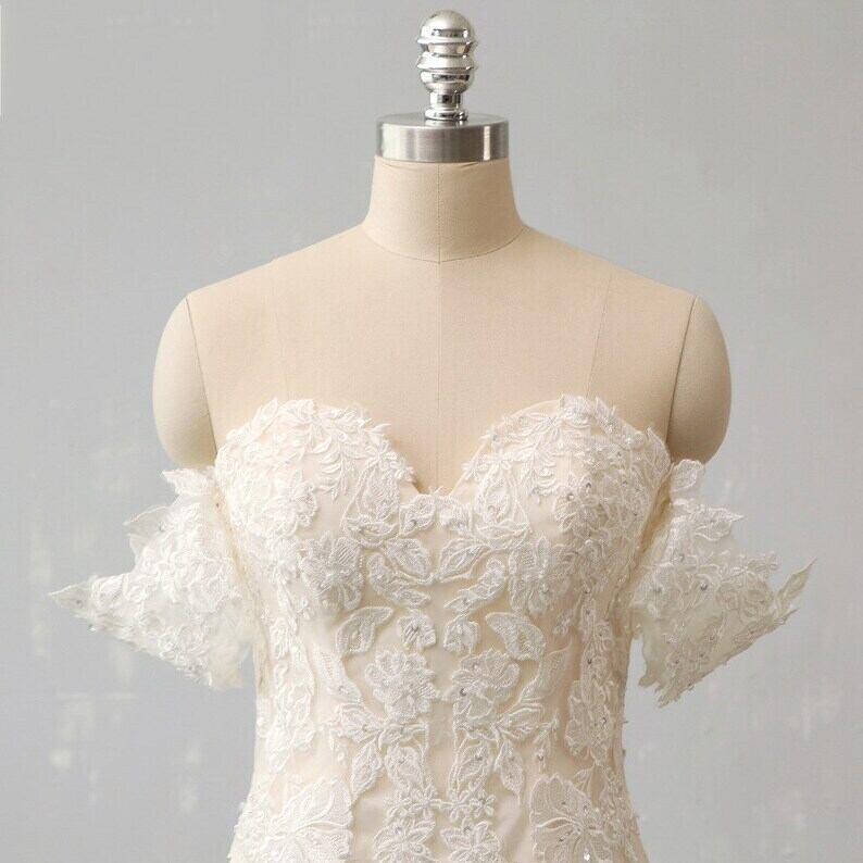 パーティードレス憧れのドレス 繊細レース 背中見せ 花嫁 結婚式 枝花刺繍 マーメイドライン オフホワイト エレガント