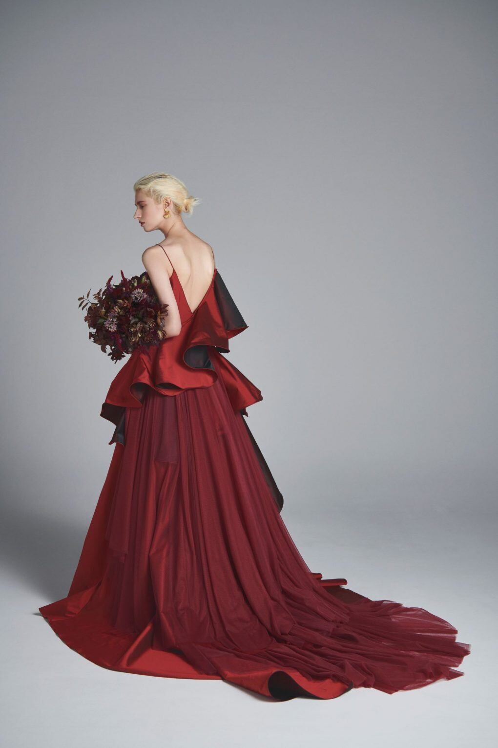 パーティードレス ワインレッド キャミソール 背中見せ 細見えシルエット 披露宴/二次会