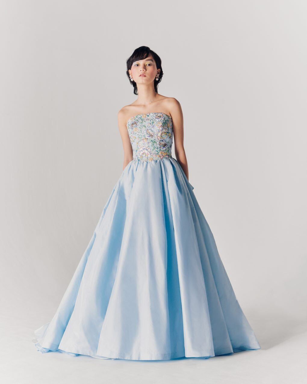 パーティードレス 薄青 軽くて快適 さっぱりしている ベアトップ 高品質!お呼ばれ パーティー