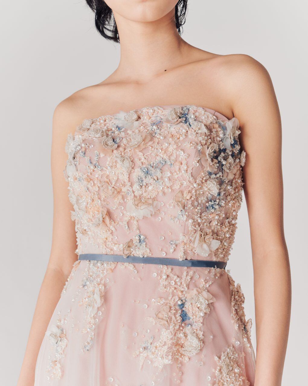 ウェディングドレス ピンク オフホワイト 上品で柔らかい 立体感 美しい刺繍 結婚式 パーティー
