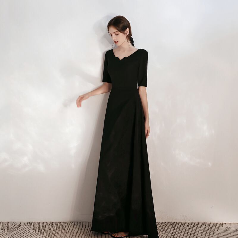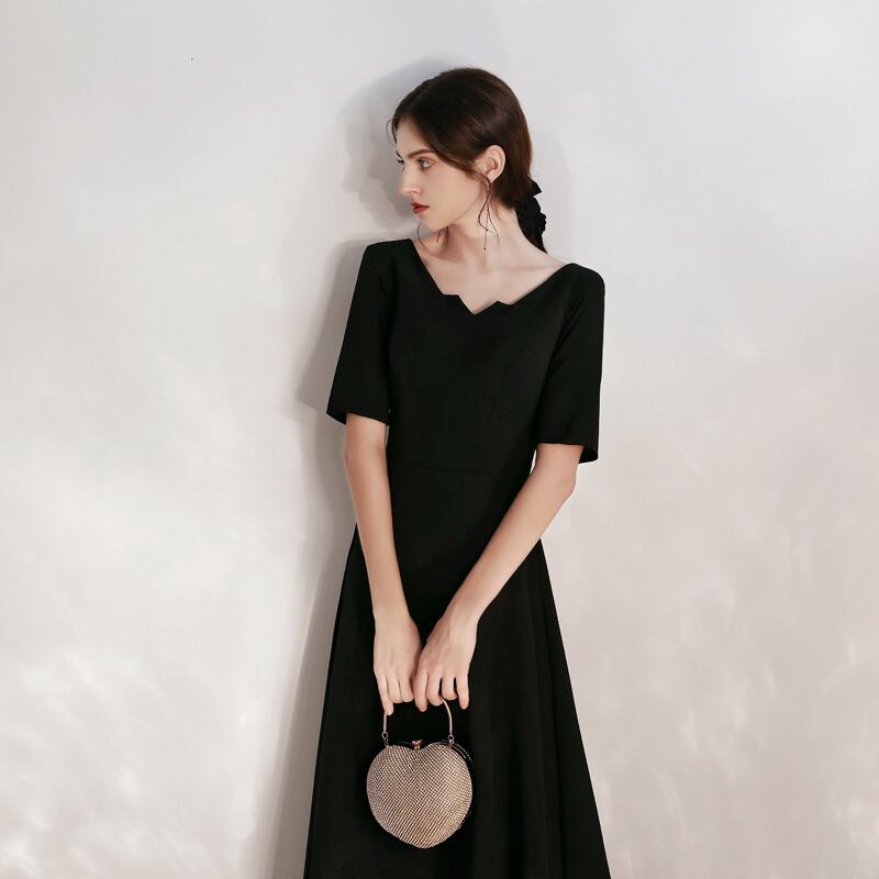 パーティードレス 黒 半袖 スレンダーライン 細見えシルエット ピアノ演奏会/音楽会/発表会など