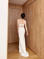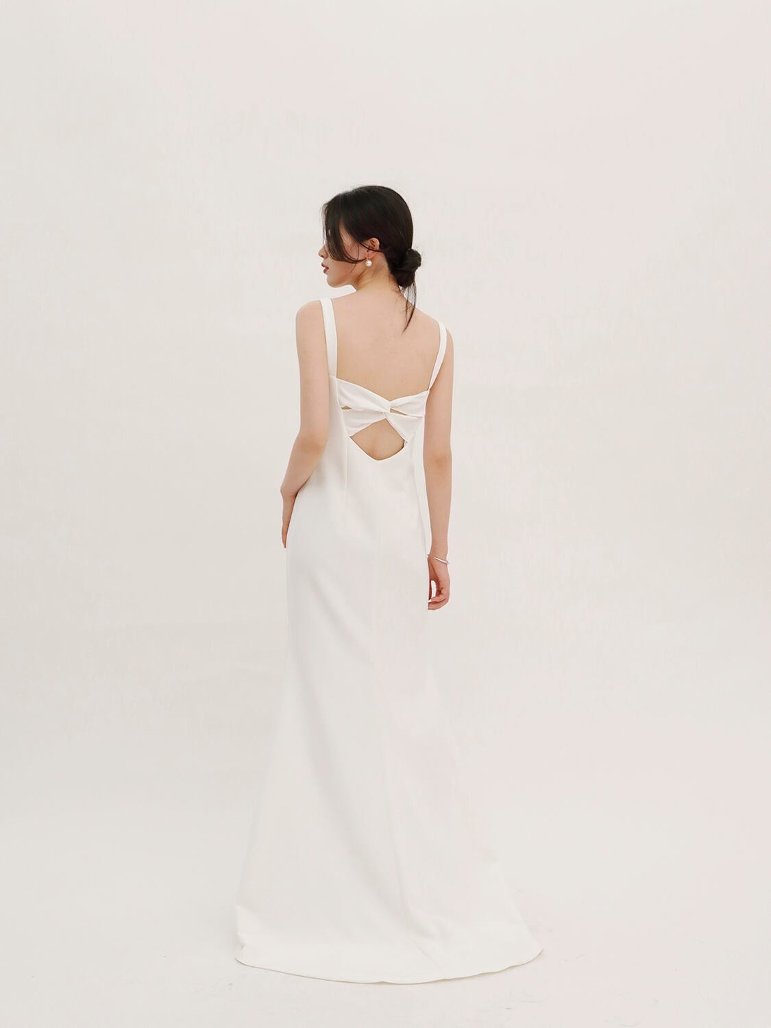 パーティードレス ホワイト Vネック 背中見せ トレーン 高品質!披露宴/デート/パーティー
