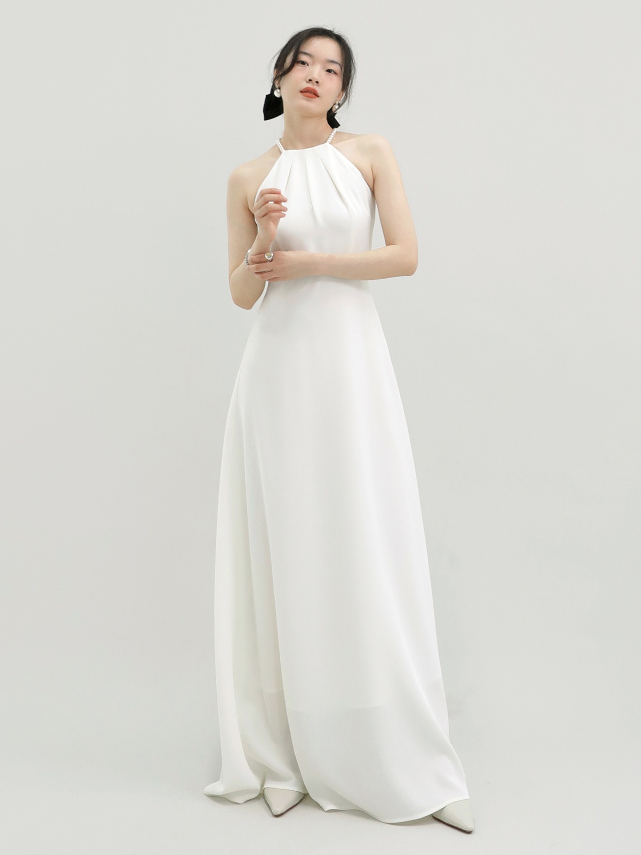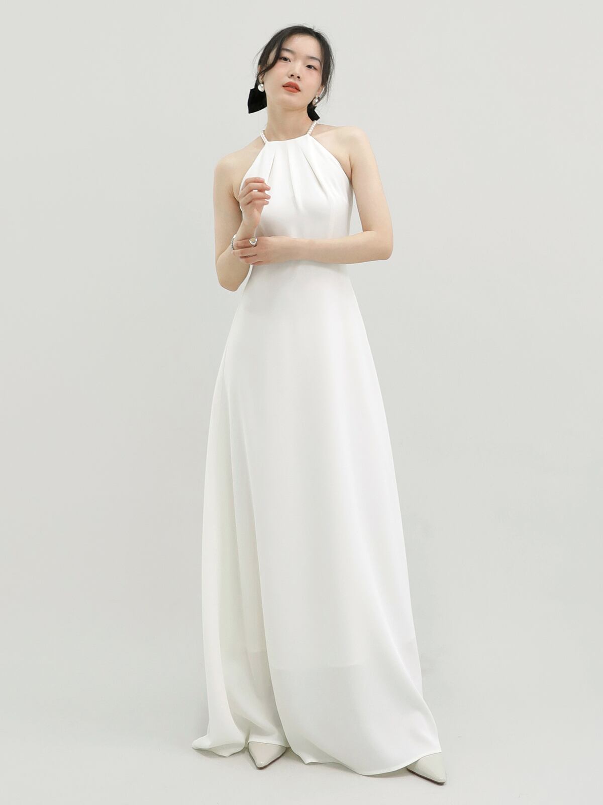 パーティードレス ホワイト ホルターネック Aライン 高みせ スレンダーライン お呼ばれ/パーティー/デート