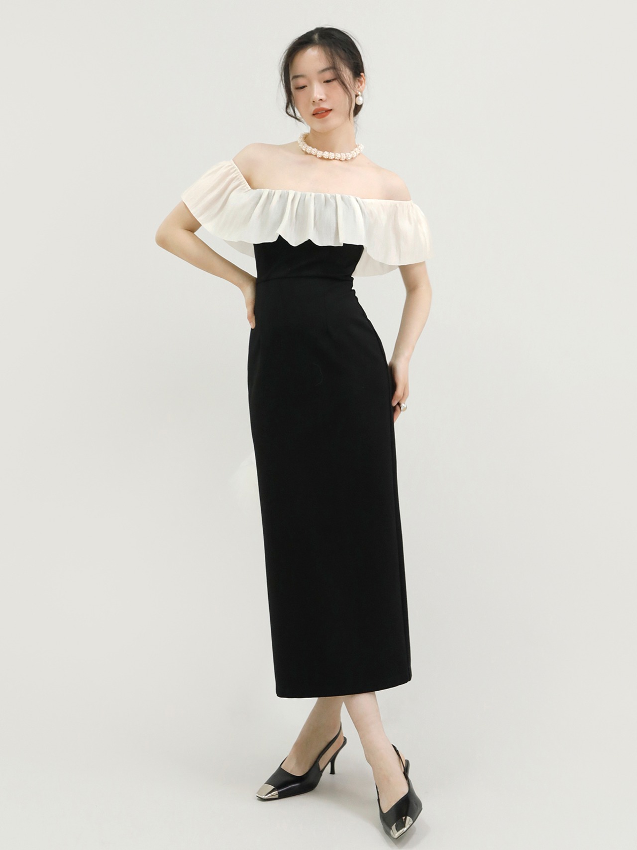 パーティードレス 黒 オフショルダー スリット マーメイドライン クラシカル お呼ばれ/合コン/デート