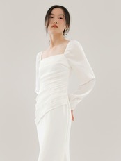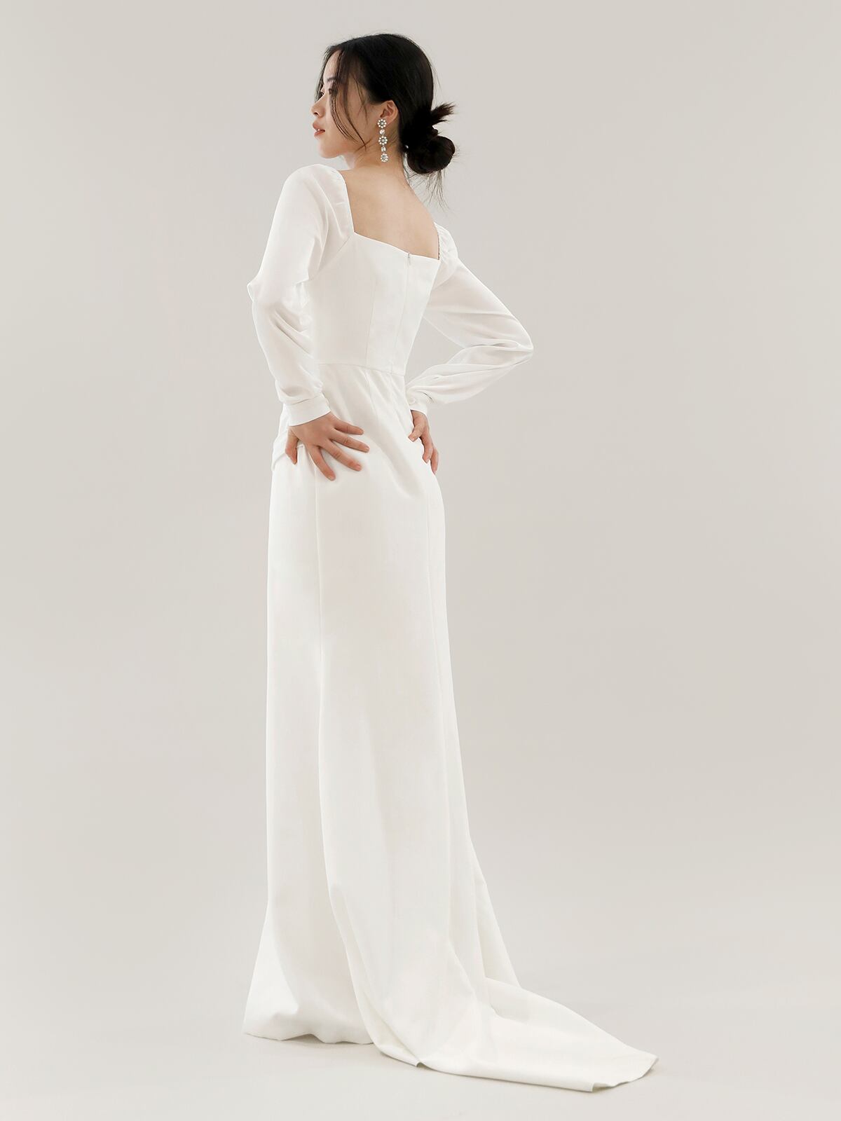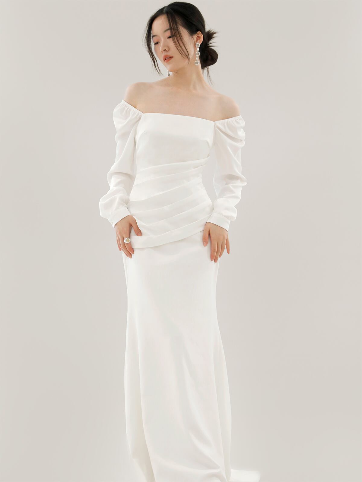 パーティードレス ホワイト オフシェル/スクエアネック 長袖 高品質!結婚式/披露宴/二次会