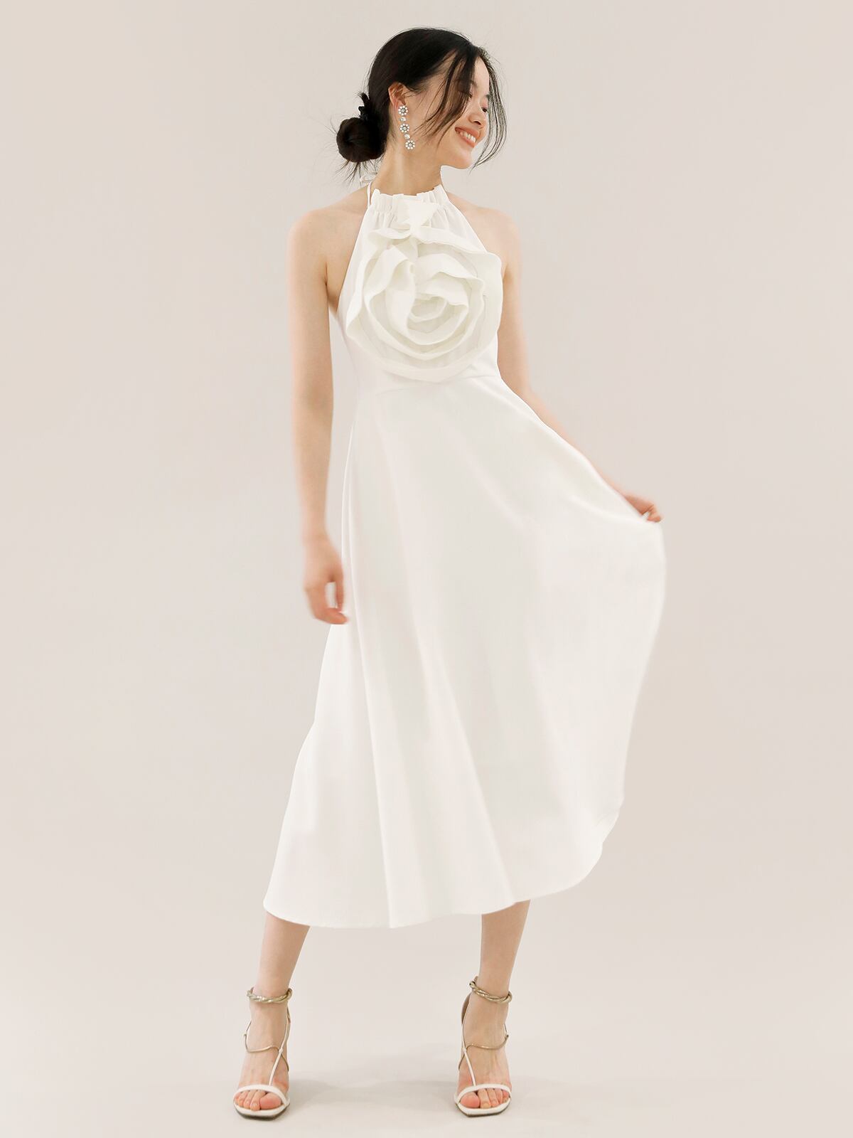 パーティードレス ホワイト Aライン ホルターネック ビスチェ 背中見せ 合コン/デート/パーティー