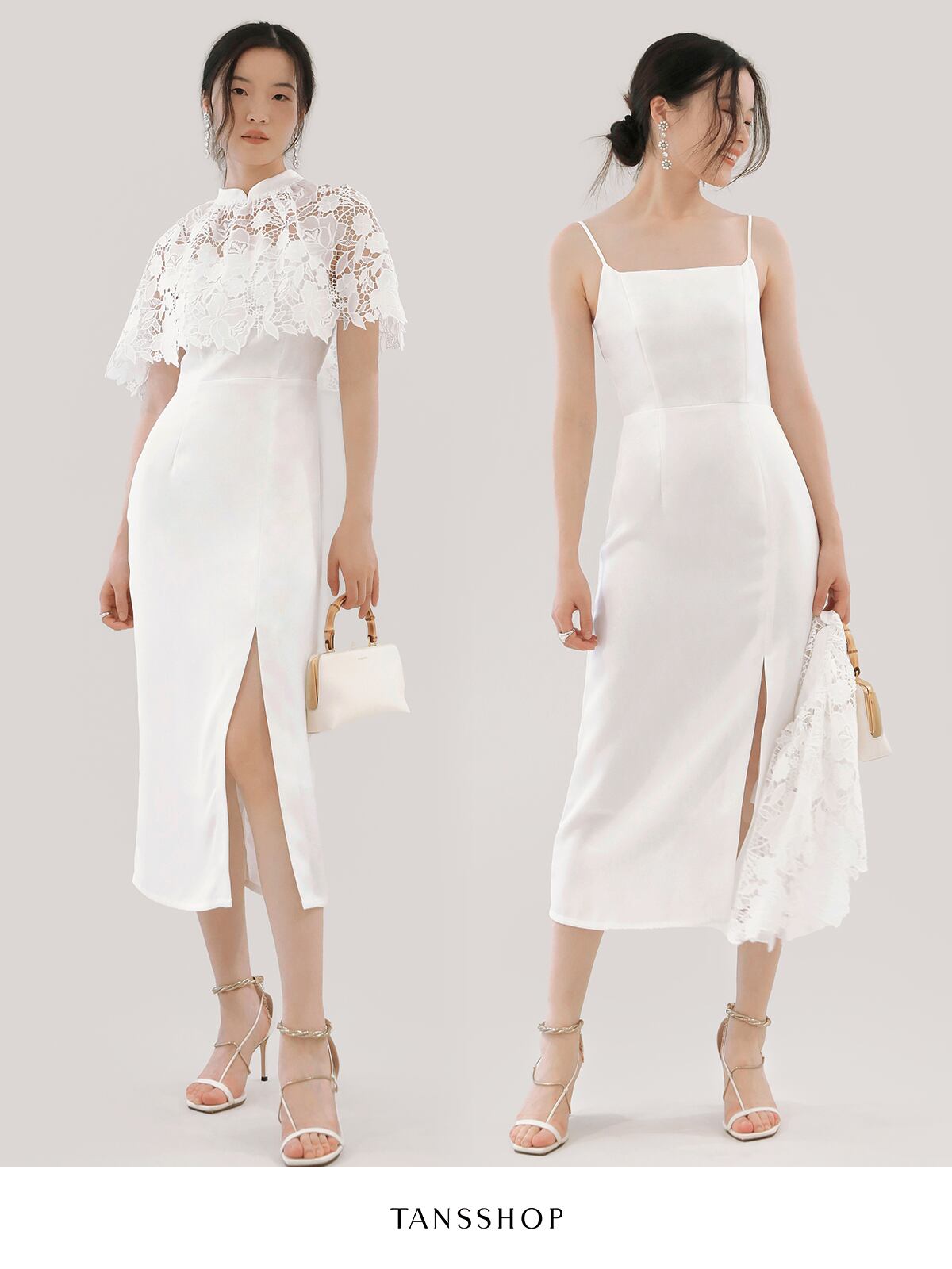 パーティードレス ホワイト ショール/キャミソール フロントスリット エレガント お呼ばれ/二次会/デート
