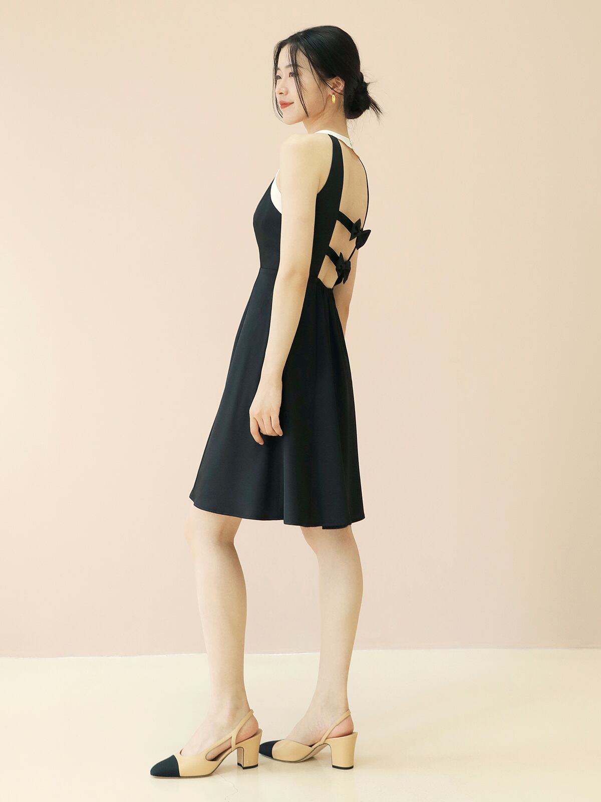 ミニワンピース 黒 ホルターネック 背中見せ Aライン ファスナー 細見えシルエット 合コン/デート