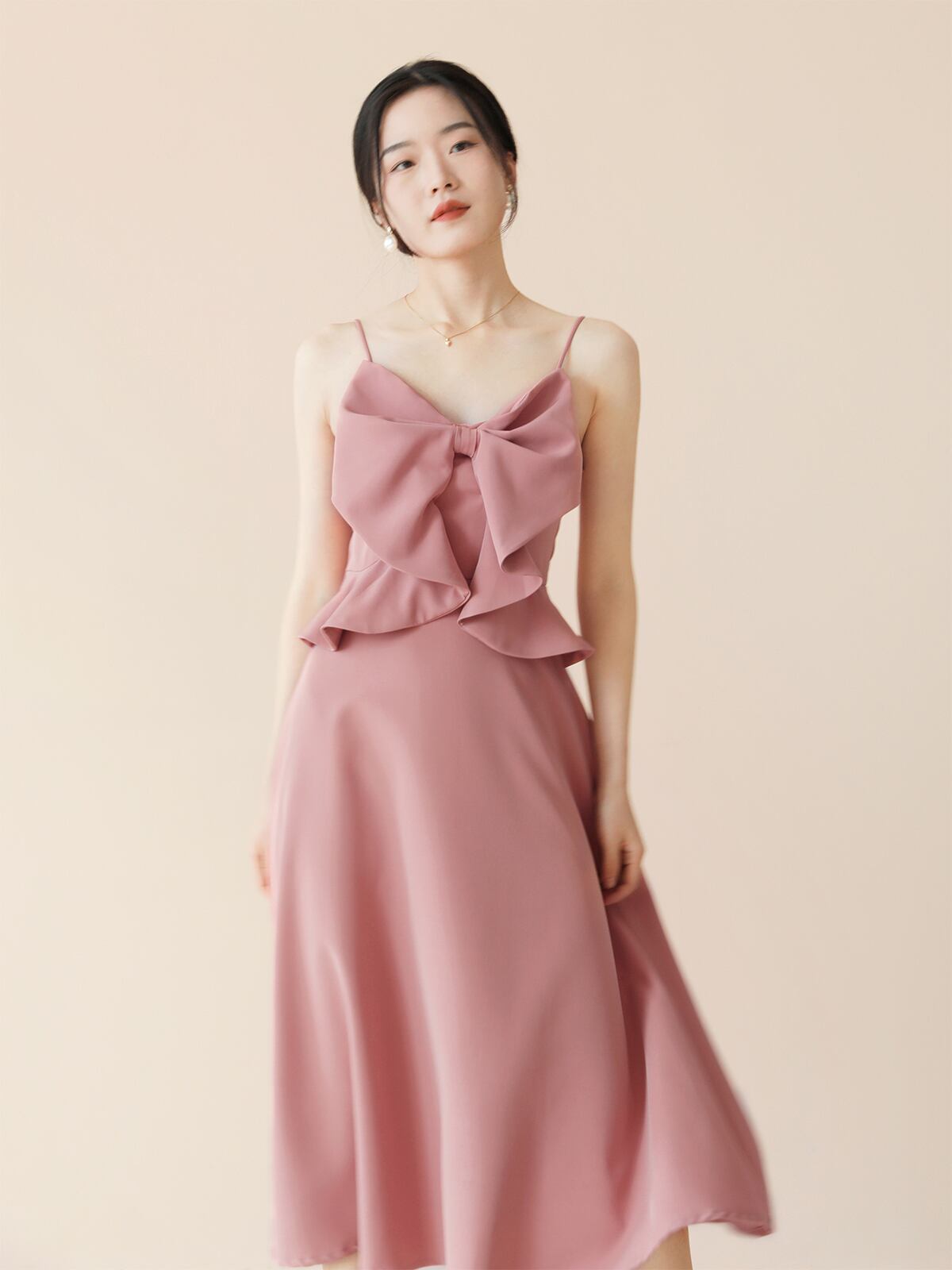 パーティードレス ロングワンピース ホワイト/ピンク キャミソール リボン Aライン 合コン/デート/パーティー