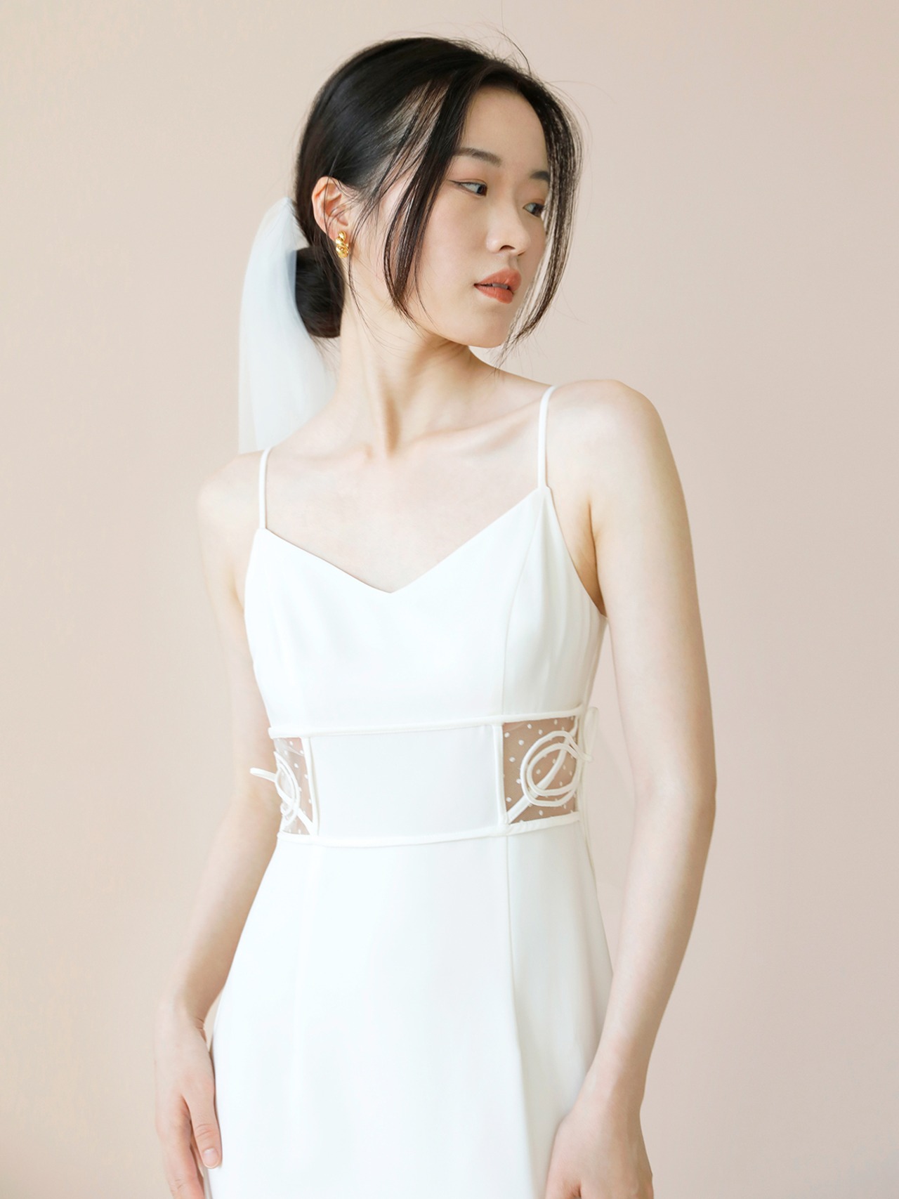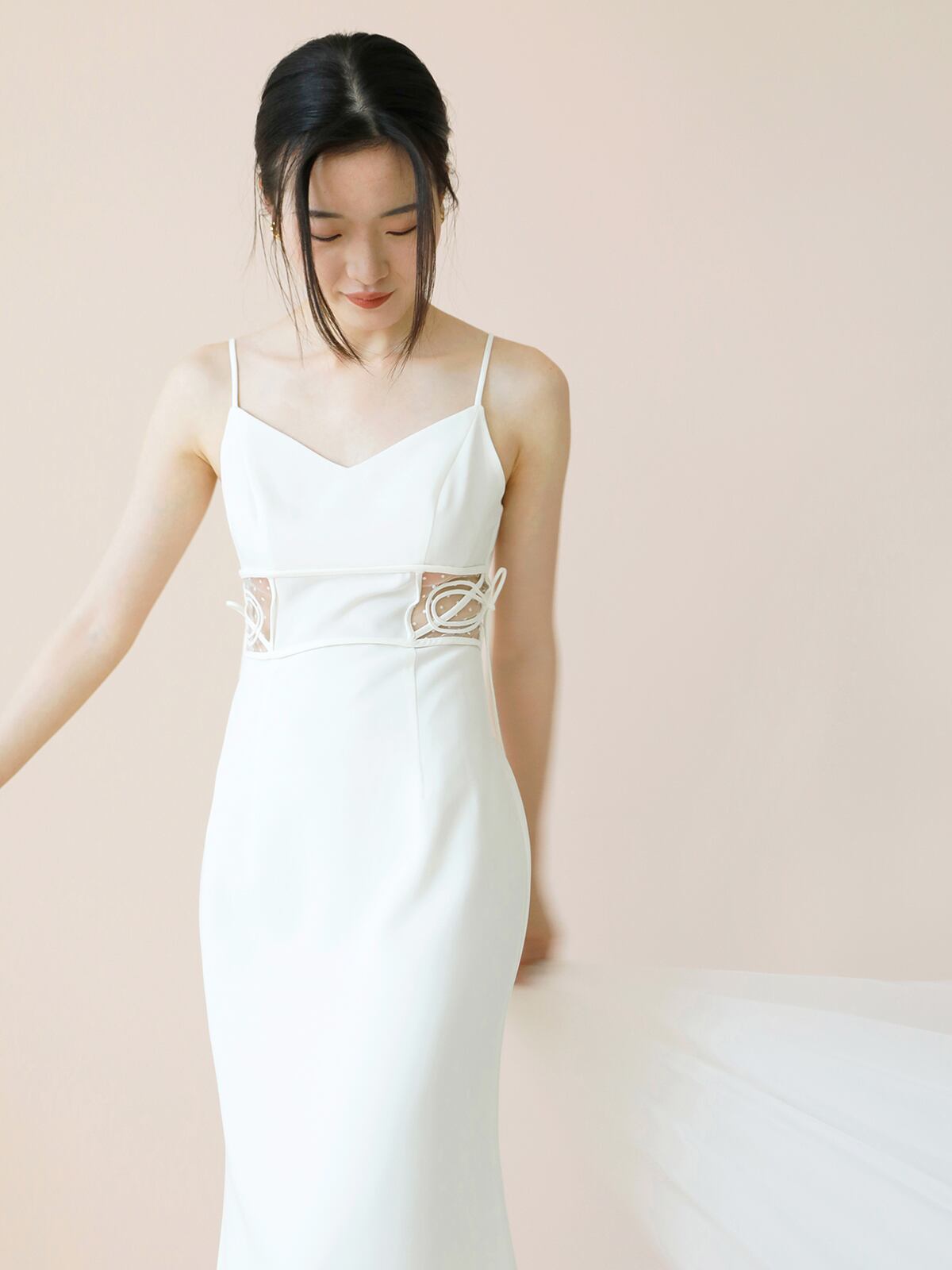パーティードレス ホワイトVネック キャミソール テールスカート 高品質!合コン/デート/パーティー
